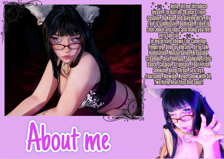 Ahegao, Cosplay, Dildo atau Vibrator, Striptis, Merokok, Tenggorokan, Mainan Puting, Masturbasi, Pertunjukan Minyak, Squirt, Twerk, Doggy Style, Memukul, Tarian Erotis, Kaki Unta, Krim, Dirty Talk, Bermain Peran, Mainan Seks, Blowjob, Tittyfuck, Heels, Topless, Cowgirl, Anal, Penetrasi Ganda, Mainan Anal, Tersedak